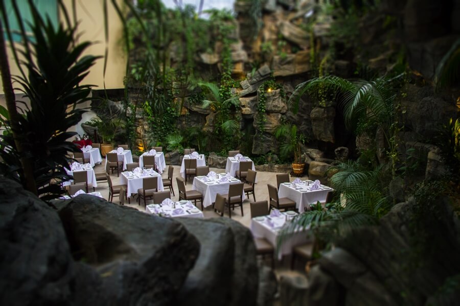 Located in the Lobby, being the only restaurant in Guatemala with an atrium, surrounded by vegetation and a waterfall.